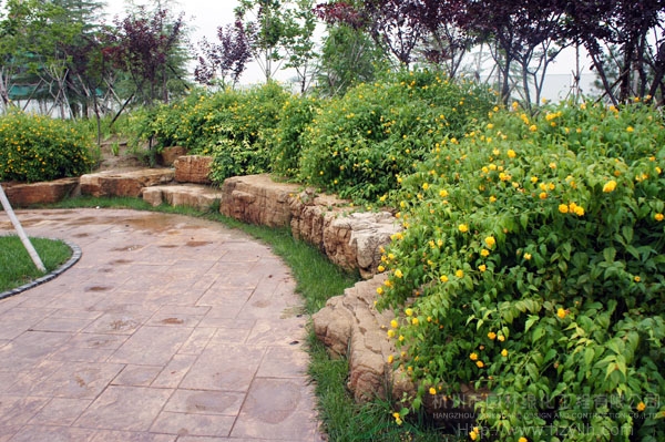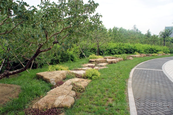 山東壽光市東環(huán)路東側(cè)綠化改造工程(圣城街-北環(huán)路)面積9萬平方米,施工范圍為機(jī)動車道與非機(jī)動車道之間2.5米的隔離綠化帶和30多米寬的路側(cè)綠化帶,施工內(nèi)容包括土方地形整理、綠化種植、園路鋪裝、景石擺放、景觀小品營建等。2009年9月開工,2010年7月竣工。經(jīng)過2年的精心養(yǎng)護(hù),如今,這里樹木蔥郁,花草繁茂,一路走來,隨著多種風(fēng)格的園路在腳下延伸,風(fēng)景也在眼前不斷變化。