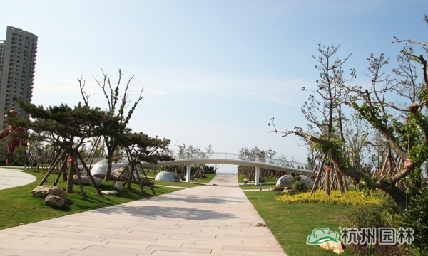煙臺開發(fā)區(qū)濱海廣場項目位于開發(fā)區(qū)海濱路以北、峨眉山路與昆侖路之間,施工面積約10萬平方米,施工內(nèi)容主要包括綠化種植、硬質(zhì)鋪裝、園林建筑、水電安裝等,施工內(nèi)容多,工藝要求高,工程量大,是一個大型綜合性園林工程項目,由杭州市園林綠化股份有限公司承建。