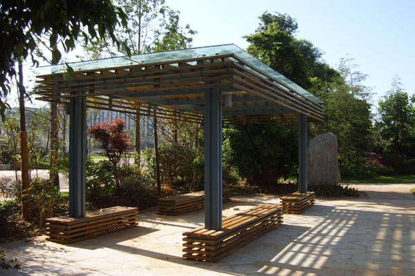 花架與周邊植物巧妙搭配。