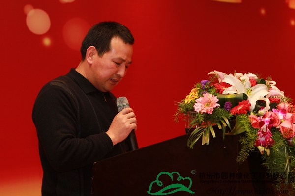 表彰儀式結束后,董事長吳光洪發表了新年致詞。吳董首先對各位領導和嘉賓的到來表示了熱烈歡迎;然后與大家共同回望了企業2011年所取得的成就,并對2012年的發展進行了規劃和展望,他感謝大家對杭州園林一路的支持與關注,希望未來仍能與大家一起攜手前行;最后,吳董舉起手中的酒杯,與大家一起為新的一年干杯,并宣布晚宴正式開始。