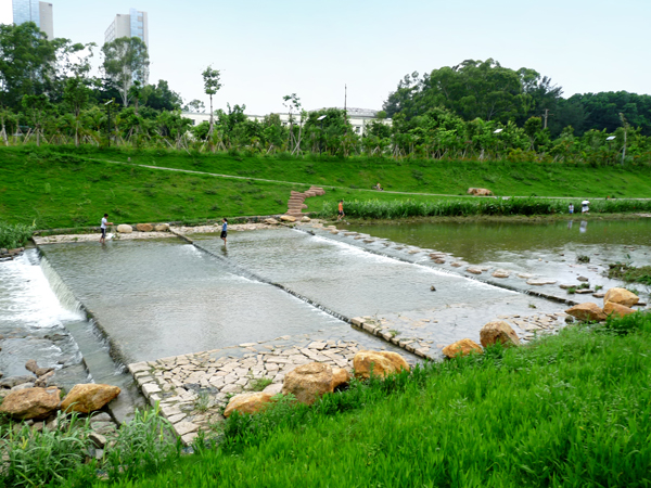 該工程完工后,淺而寬闊的河道,清亮透徹的河水,駁岸上青青的草地,色彩艷麗的花卉,極具創(chuàng)意的硬質(zhì)小景,小巧的疊水平臺(tái)……如畫(huà)的生態(tài)美景和多彩的濱河景觀讓人備感身以愉悅,成為深圳市民散步休閑的好去處。