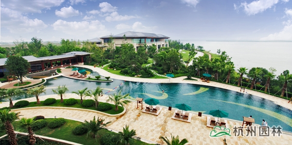 如今,走進吳江東太湖溫泉度假酒店,開闊大氣的入口景觀,整齊劃一的行道樹,道路兩側花境式的植物組團,首先帶給人一種高端、原生態(tài)的感覺。隨著蜿蜒的園路不斷延伸,更多的園林美景一一呈現(xiàn):開闊的草坪起伏有致,自然式的花境布置清新雅致,造型獨特的黑松、女貞盡顯莊嚴華貴,婚禮草坪處處充滿浪漫氣息,露天泳池彌漫著濃郁的熱帶風情,溫泉泡池區(qū)懷舊氣息撲面而來,湖邊的觀景平臺則將自然美景盡收眼底……大氣中盡顯華貴雍容,細節(jié)中隨處可見精致品味,文化氣息處處流轉,自然美景比比皆是,園林與建筑渾然一體。“雖由人作,宛自天開”,是對該項目最凝煉的贊譽。