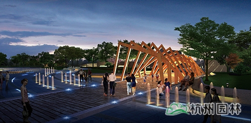 渡航廣場(chǎng):鉆石形狀的綠坡結(jié)合船型夾板造型,寓意破浪前行的渡船,象征肥西人民開(kāi)拓進(jìn)取的時(shí)代精神。