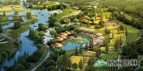 養(yǎng)生休閑主題區(qū):對(duì)原有的生產(chǎn)景觀(guān)保留改造,水稻田、葡萄園、油菜園、果園、苗圃以及可食用水生植物被布置其中,兼具經(jīng)濟(jì)與觀(guān)賞價(jià)值,結(jié)合水莊、竹庭、有機(jī)菜園,酒莊等休閑景點(diǎn),推廣宣傳現(xiàn)代都市農(nóng)業(yè)。