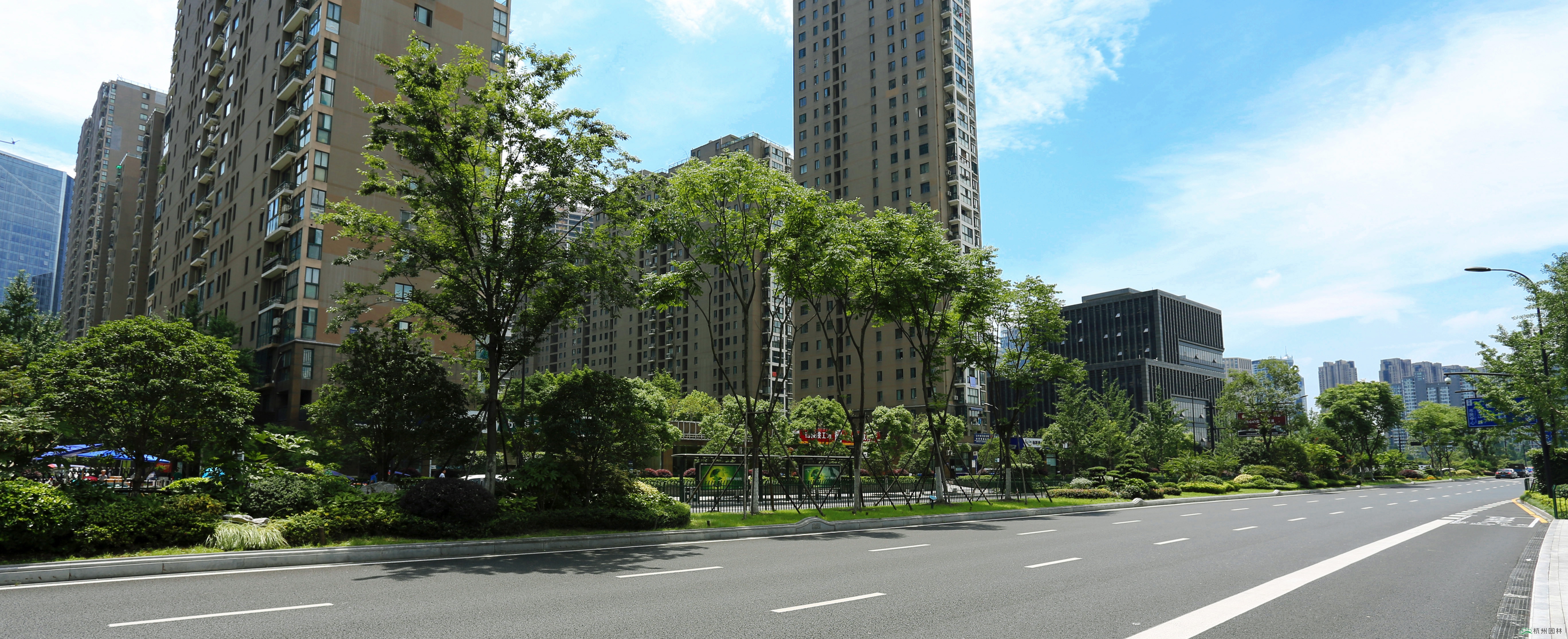 新塘路位于杭州城市東部,是連通杭州火車東站與錢江新城的主要交通要道,也是杭州G20峰會的主要迎賓大道。由杭州市園林綠化股份有限公司承建的新塘路(新風路-新業路)綜合整治工程景觀綠化I標段,南起新業路,北至曇花庵路,施工內容包括綠化種植、景墻、土方工程、硬質鋪裝等。