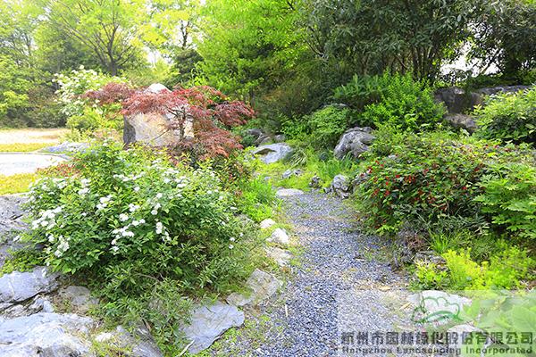 除了以上這些表現搶眼的植物,花園中心還有風格庭院和組團花境樣本展示。風格庭院展示區由歐式田園庭院、西班牙風情庭院、巖石園、英式自然庭院、日式庭院、苔蘚園、現代中式庭院、自然中式庭院、東南亞風情庭院、自然水景區等10個景觀點組成。各具特色的它們,也在這個最美的季節展示出最美的風采。