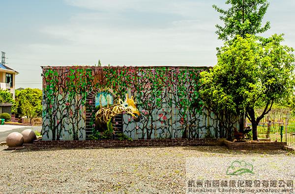 以舊青磚與多種元素搭配的景墻,
