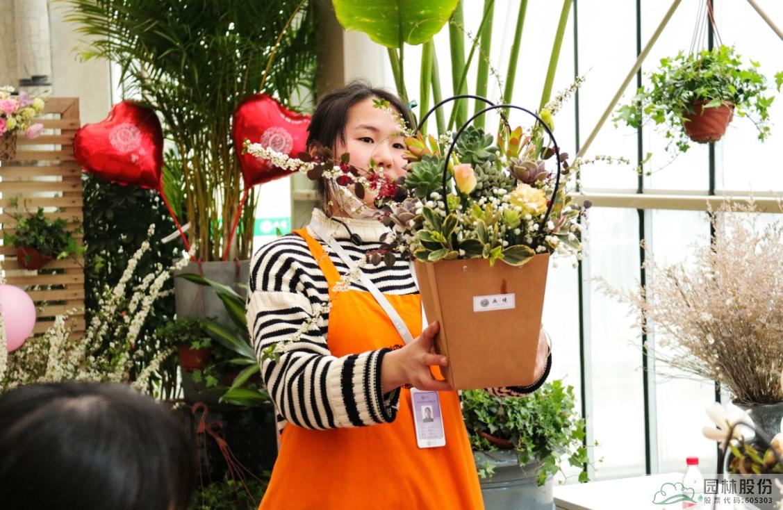 這些花材會(huì)像變魔術(shù)一樣組合成一盆盆精美的手拎禮品袋鮮花,如花藝師手上演示的這一盆,是不是很期待呢?