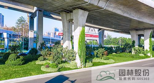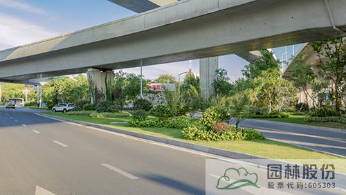 項目綠化施工主要包括道路分車帶、道路兩側帶狀綠地、節點綠地、高架橋垂直綠化等區塊。每個區塊根據其功能與特色,通過不同植物配置,營造豐富景觀。