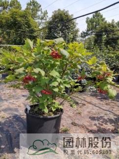 忍冬科莢蒾屬,落葉灌木,高可達4米。葉掌狀,通常三裂,秋季葉色轉(zhuǎn)紅,特別艷麗。聚傘花序白色,不孕花末期會呈現(xiàn)粉色,花徑較大,花藥呈黃色,花期4-5月。果實較大,形似櫻桃,紅艷誘人,給人以強烈視覺沖擊力,能形成園林觀賞的視覺焦點。觀果期長,可達4個月之久。適應性強,通常可自然成形。一年施肥3次,早春萌芽前,花后及秋季。適合工程應用與庭院觀賞。