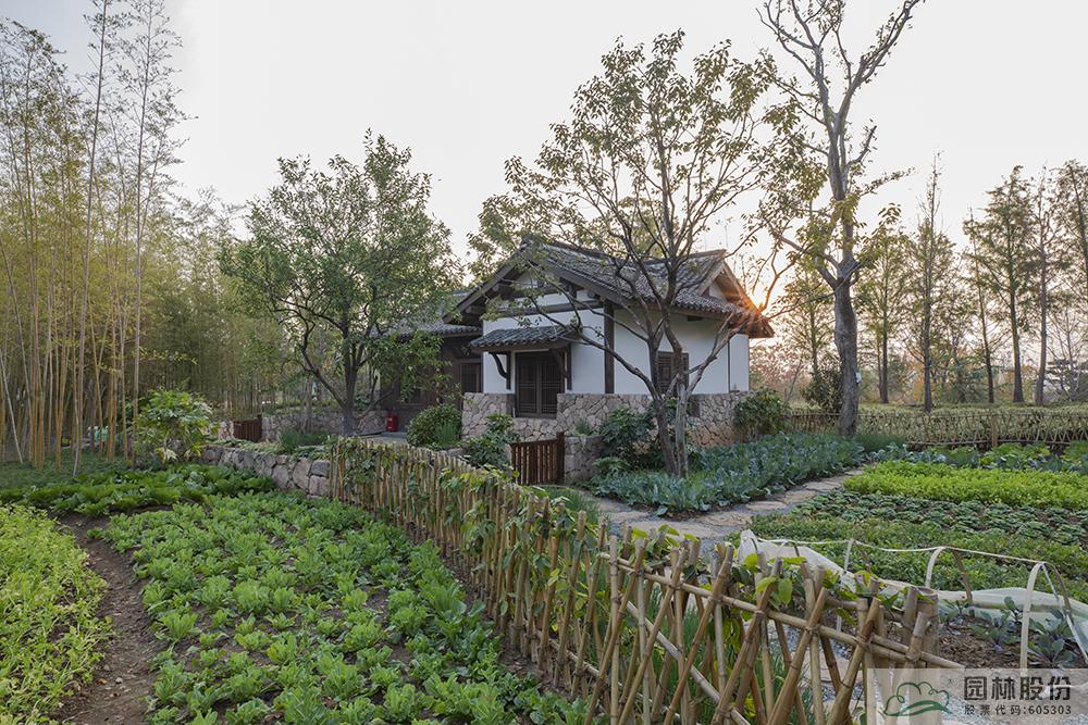 聽完美麗浙江的精彩故事,繼續前行。推開后院半掩的木門,園內一畦畦綠油油的香菜、紫甘藍、大白菜、萵苣、芹菜、小蔥等長勢喜人,山楂、石榴、香泡、柿子等果子在枝頭飄散著淡淡的果香,銀杏、楓樹、黃櫨等色葉樹紅黃交錯,鄉土植物的配置強化了民居空間的山地氛圍和景觀特色,生態菜園景觀勾勒出錢塘人家的現代田園風情。