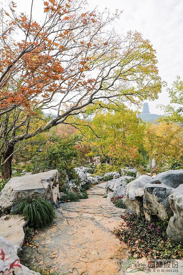午后的暖陽穿過竹林,在碎石拼裝的園路上灑下斑駁光影,沿著幽靜的小路漫步前行,來到“竹穩”展區。此處選取西湖環境中“茂林修竹”的元素,以毛竹種植為主,結合觀賞價值較高的金鑲玉竹、龜甲竹等,營造出曲徑通幽的景觀效果。