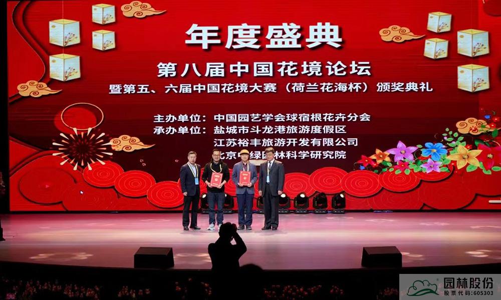 園林股份副總裁李壽仁(左二)上臺領取特級花境師證書