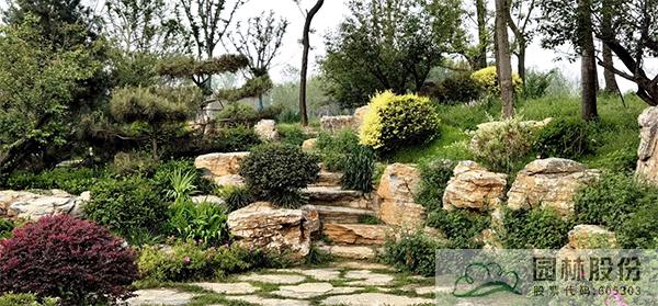 運用山石點綴園林空間,比如:路石、駁岸、擋土墻、石磯、踏步、護坡、花壇,既造景又具實用功能;石材的機理及質感在環境中可起到點晴作用,使園林空間層次感及深度得以加強。