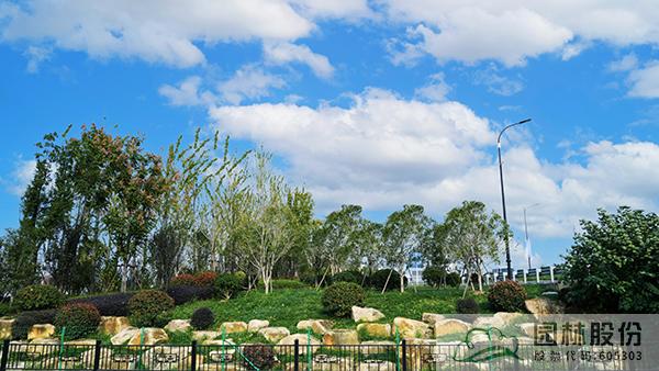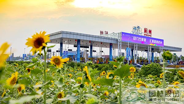 項目采用江南園林自然式組團配置造園手法,通過豎向堆土形成立體空間,以銀杏、黃山欒樹等鄉土樹種為背景基調,丹桂、紫薇及球類構成前景,針形、卵形、帚型植物之間相互襯托。結合杭州亞運特色,以立體綠雕塑、亞運吉祥物、時花布置、道旗裝飾、收費站門樓及收費亭、公安檢查站、花箱等多種展現形式,呈現“綠色亞運理念”,展現共贏金銀銅牌,共享綠色盛會,共賞錢江潮涌。